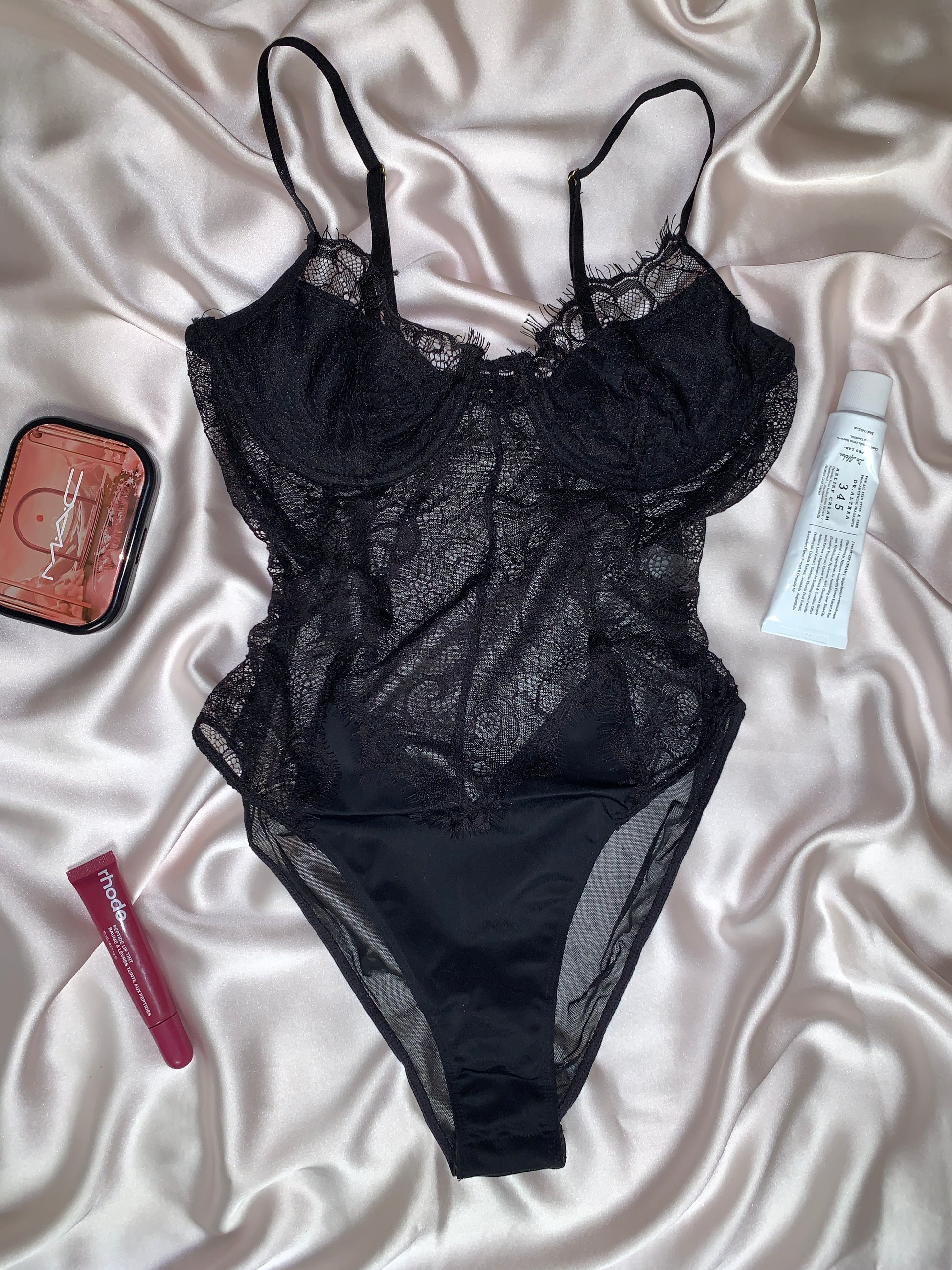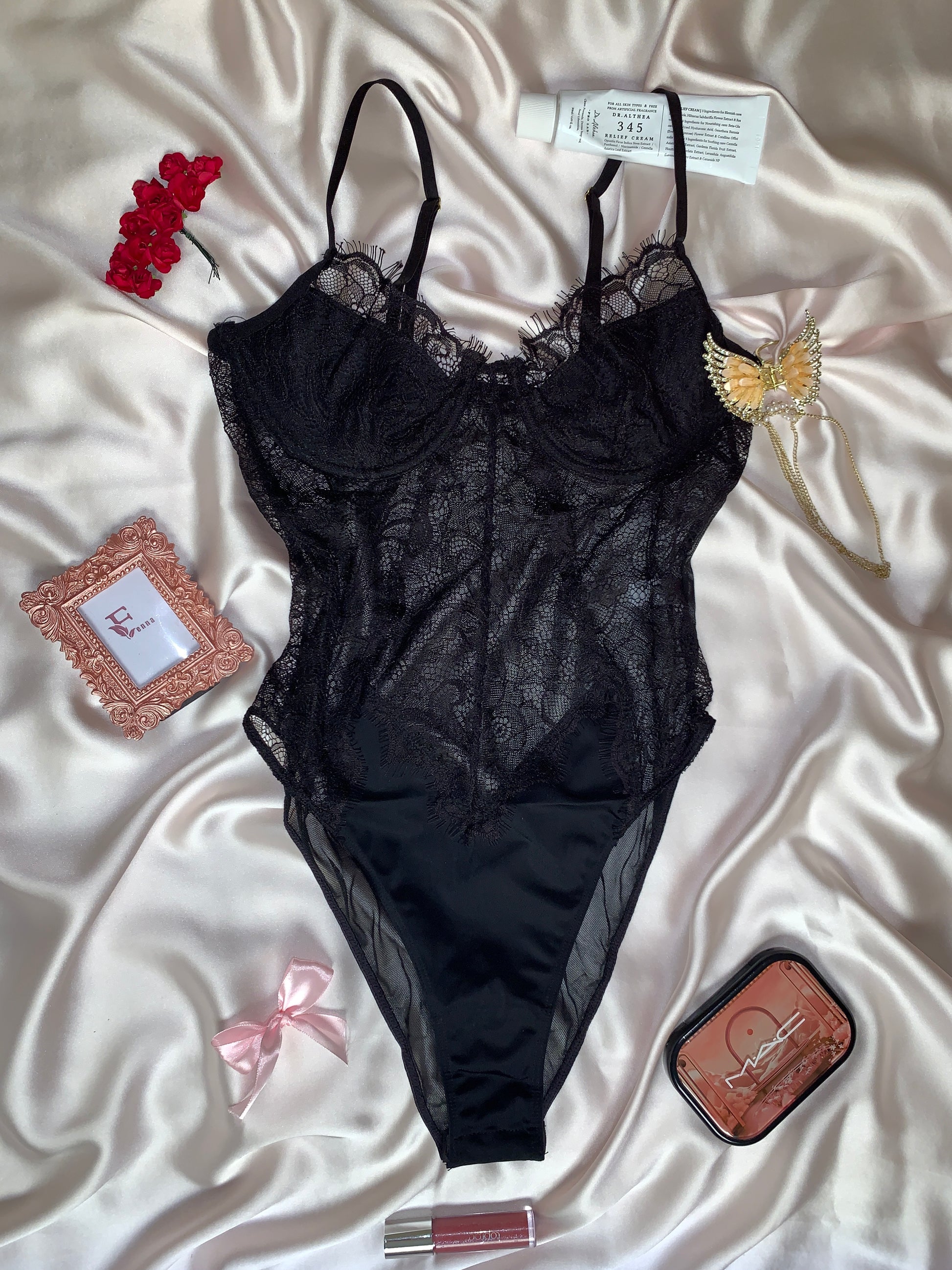 The balconette-style cups enhance your curves with subtle lift, while the delicate lace body flatters your silhouette with its seductive transparency. Finished with adjustable straps for a personalized fit, this bodysuit is a blend of sophistication and irresistible charm.