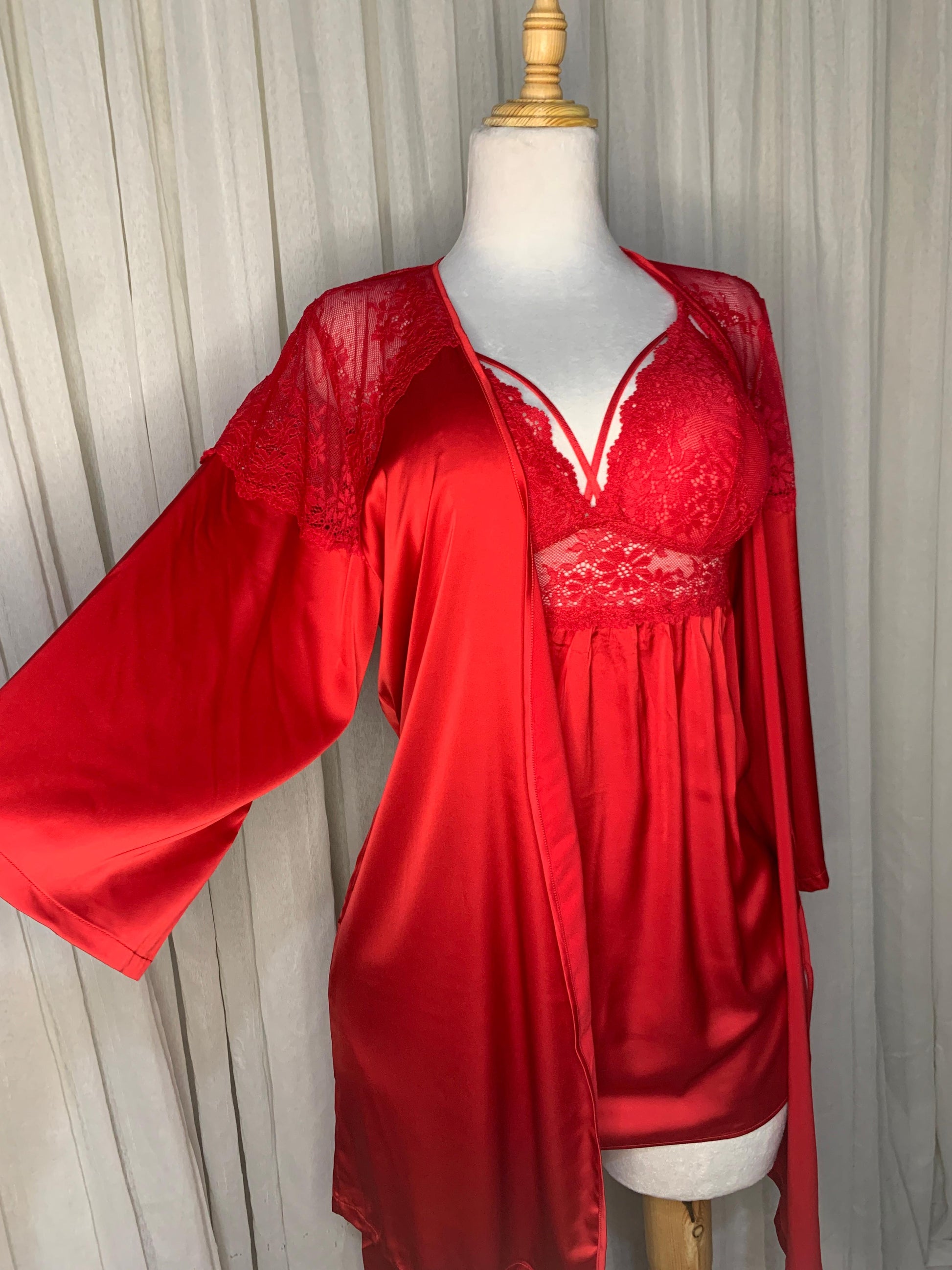 - Matching satin robe
