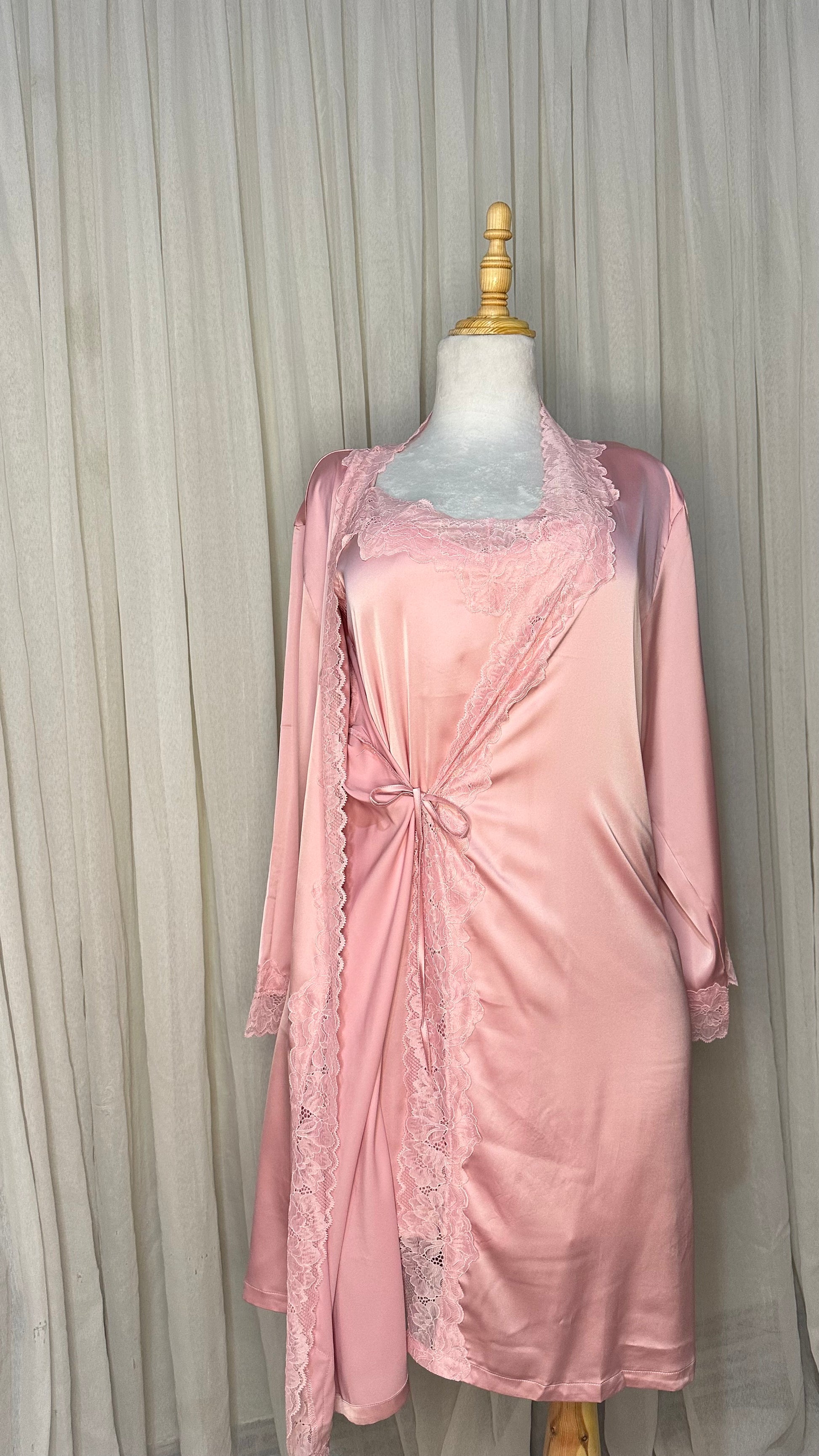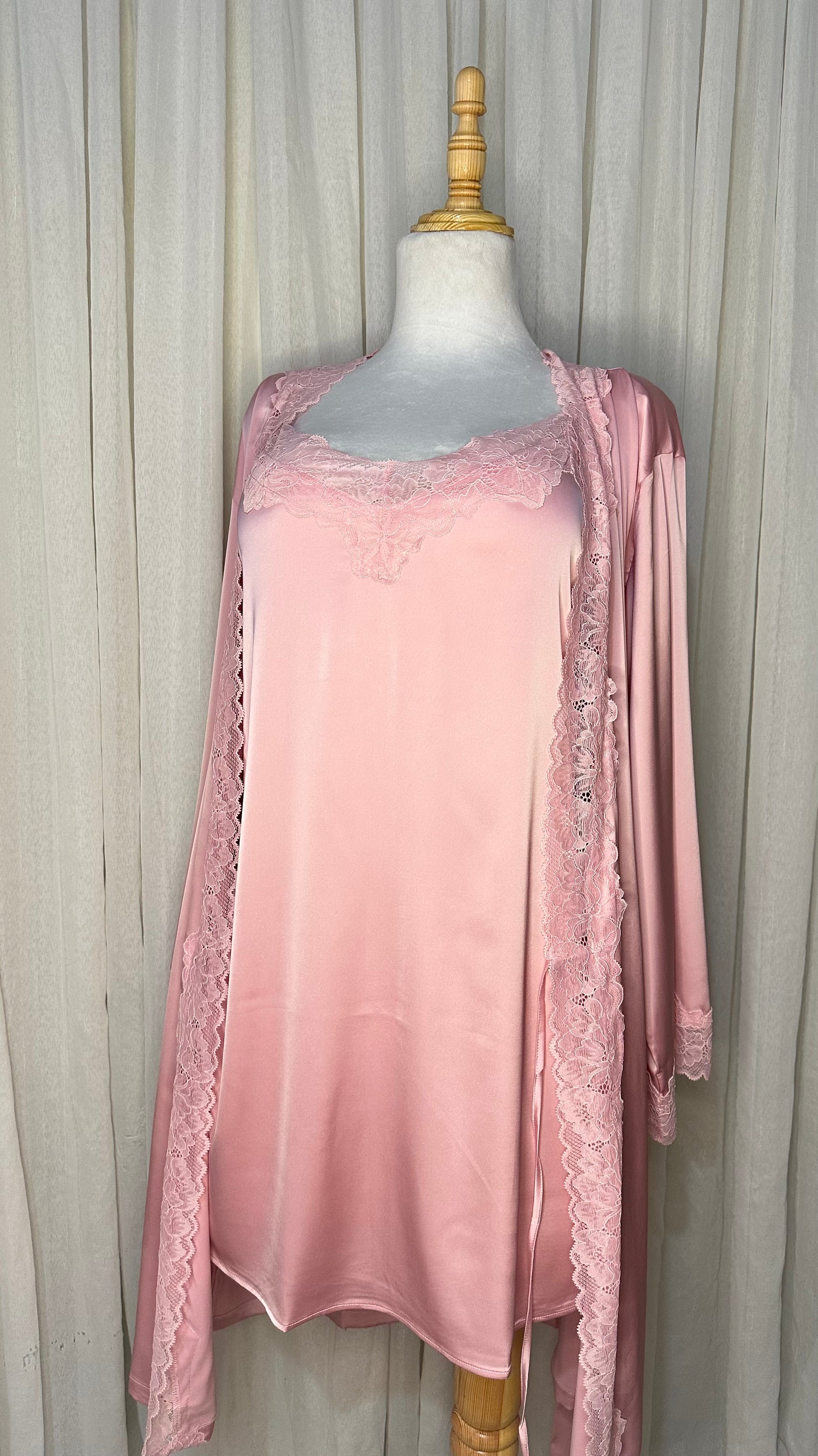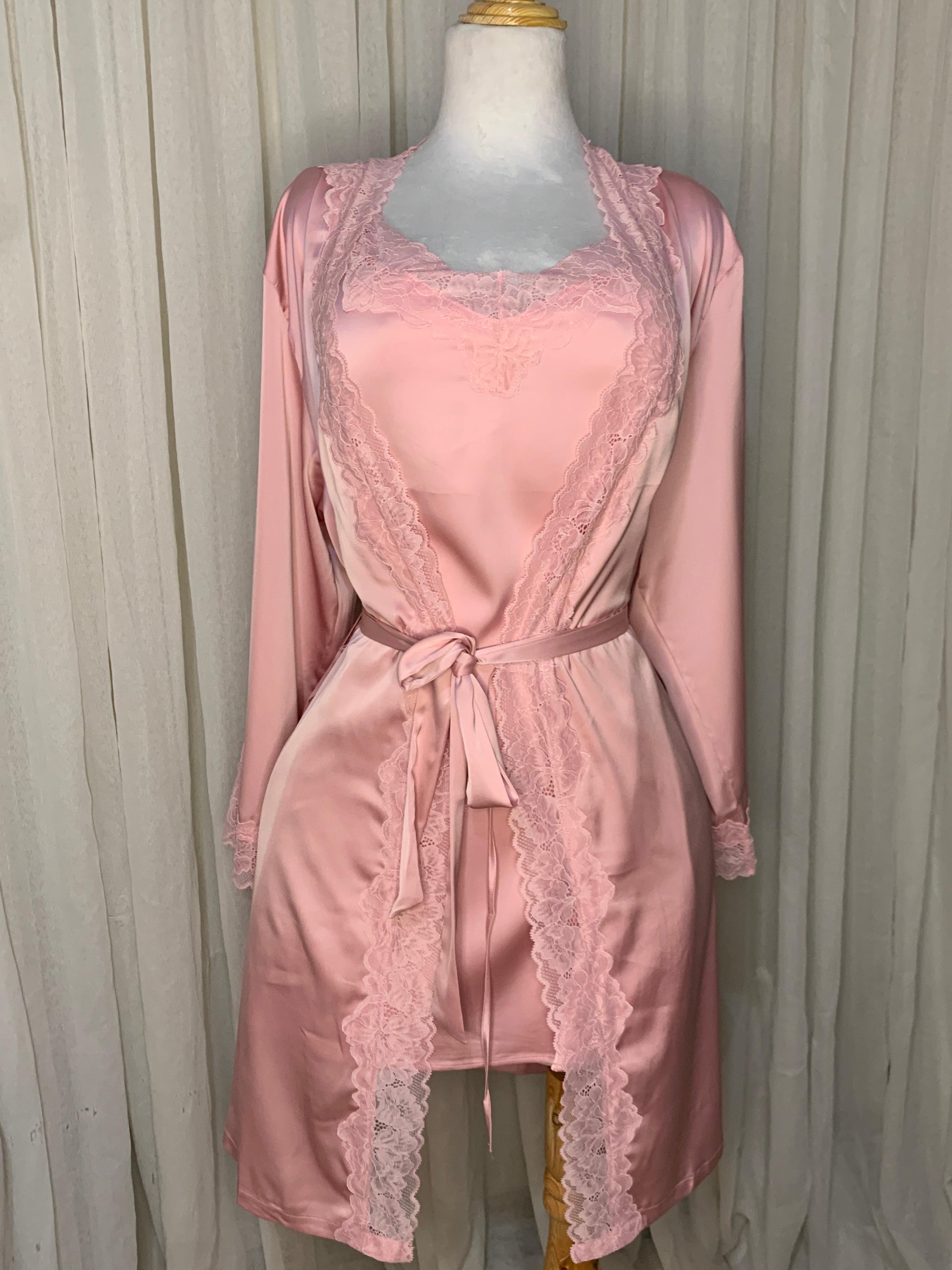 Wrap yourself in soft romance with the Rosalie Set, a delicate satin ensemble designed to highlight elegance and femininity.
